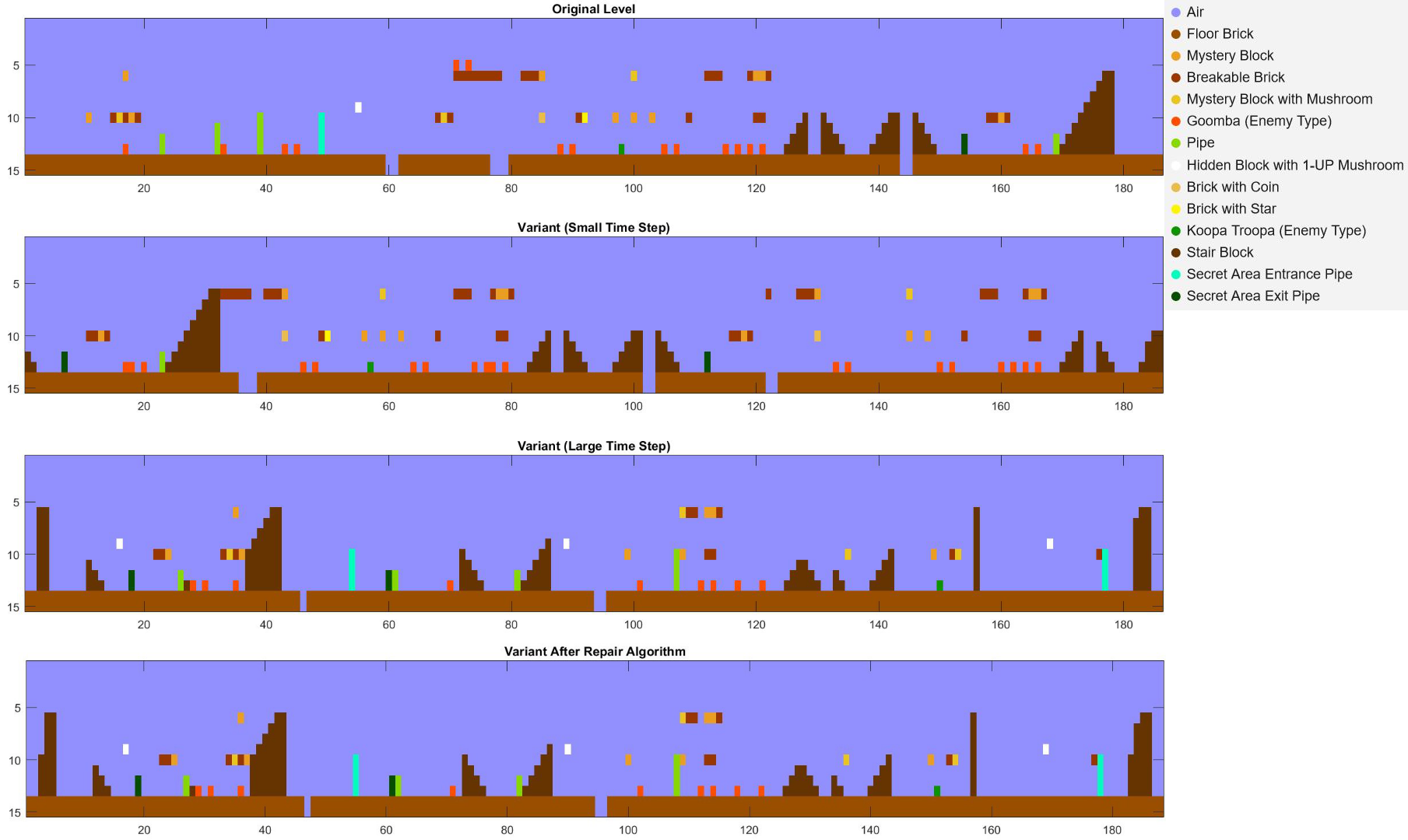 Below is a chart showing the tile layout of the original level and the variants which were created.